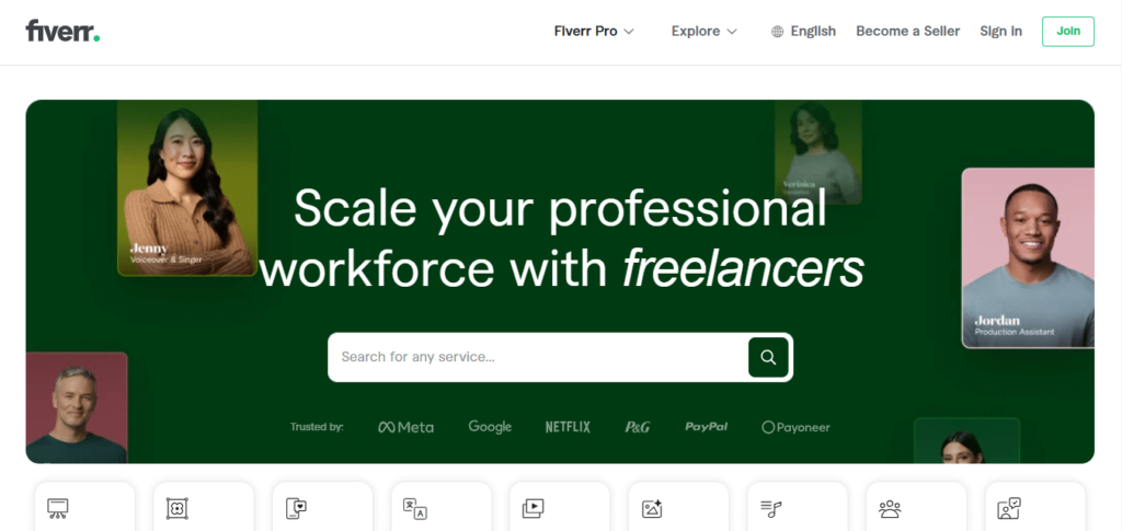 | Fiverr | Small, one-off tasks | $5 – $100 per task | Affordable, quick turnaround | Quality varies, sometimes less experienced |